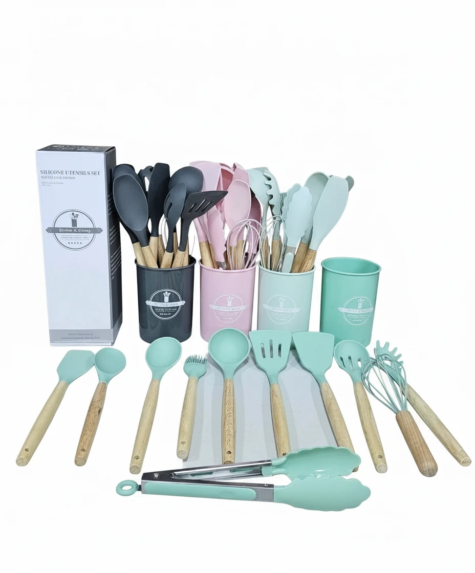 Transform your cooking experience with our Silicone Kitchen Utensil Set with Holder, designed for culinary enthusiasts and home cooks alike. This comprehensive set offers everything you need to prepare meals with ease and style. Made from high-quality, food-grade silicone, these utensils are safe, durable, and heat-resistant, ensuring they stand the test of time. Perfect for anyone looking to upgrade their kitchen tools, this set is a must-have for both novice and seasoned chefs.