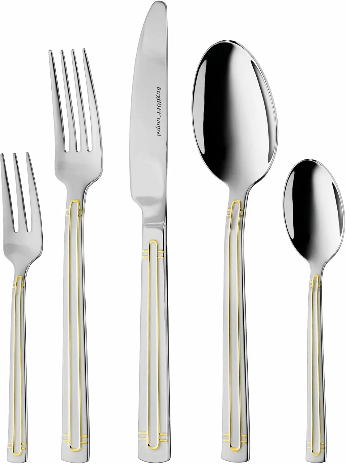 30 Piece Stainless Steel Flatware Set with Gold Detail, Service for 6, berghoff