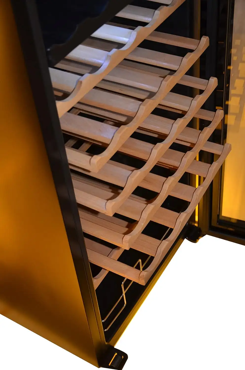 55 Bottle Dual Zone Wine Cooler with Wooden Shelves, Display Unit