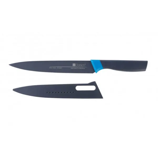 A Knife that will stand for itself. Dorsch Smart Design Knife series will elevate the blade off the worktop to improve hygiene and stop the mess from spreading all over your kitchen. You can safely place your knife anywhere on your worktop knowing that the blade wont touch anywhere to keep germs from playing all over your Knife and keep the food from reaching your worktop.