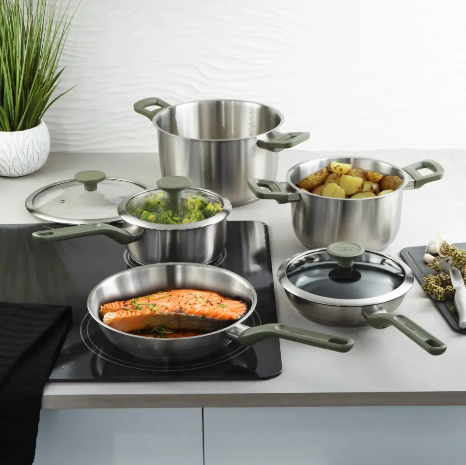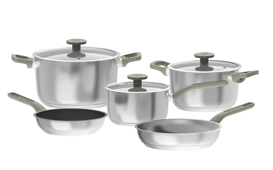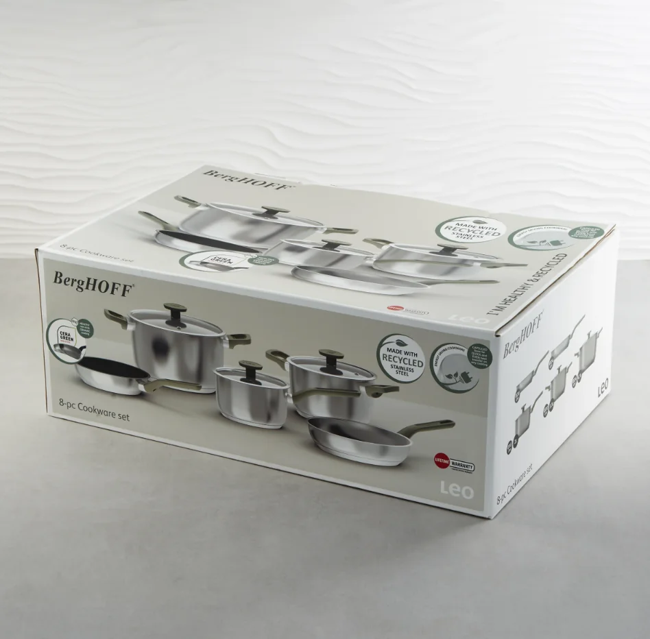 8-piece stainless steel cookware set with non-stick and glass lids, berghoff