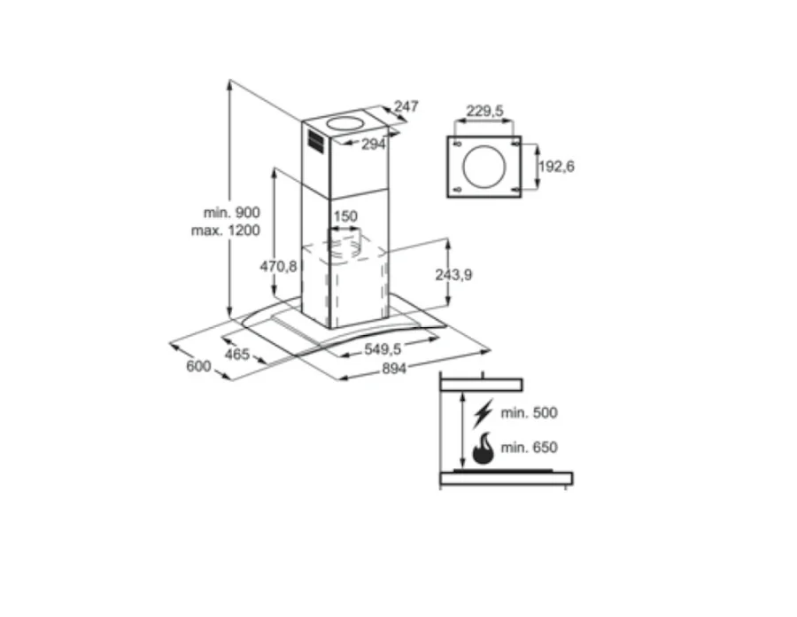 Air extraction capacity (high/low): 600 / 295 m³/h