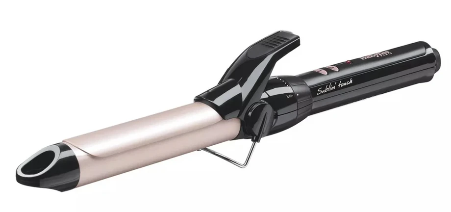 19mm curling iron, sublime touch coating, temperature 180°C, instant heat up, 10 positions (150°C to 180°C), safety stand, cool tip, swivel cord, on/off switch.