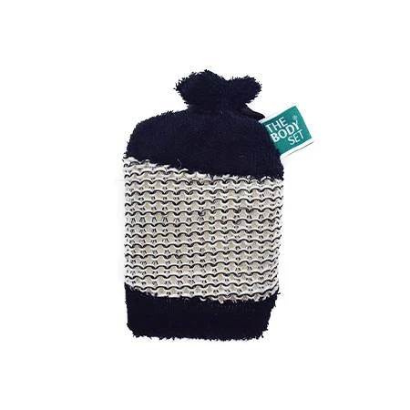 A premium-quality bath scrubber made with Sisal hemp, black PE silk and black thick towel cloth to gently clean the body while shedding off dead skin cells.