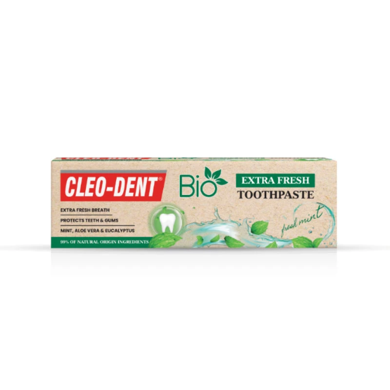 Feel the power of lasting freshness with BIO Extra Fresh Toothpaste. Made with 99% natural origin ingredients, including mint, aloe vera, and eucalyptus, it protects teeth and gums while delivering an intense fresh breath boost.