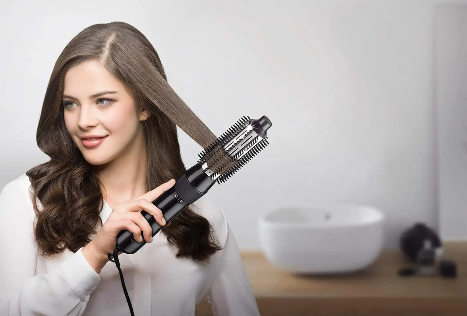 Included with the Airstyler are a small round brush (18 mm), a big one (36 mm) and a volume finger.
