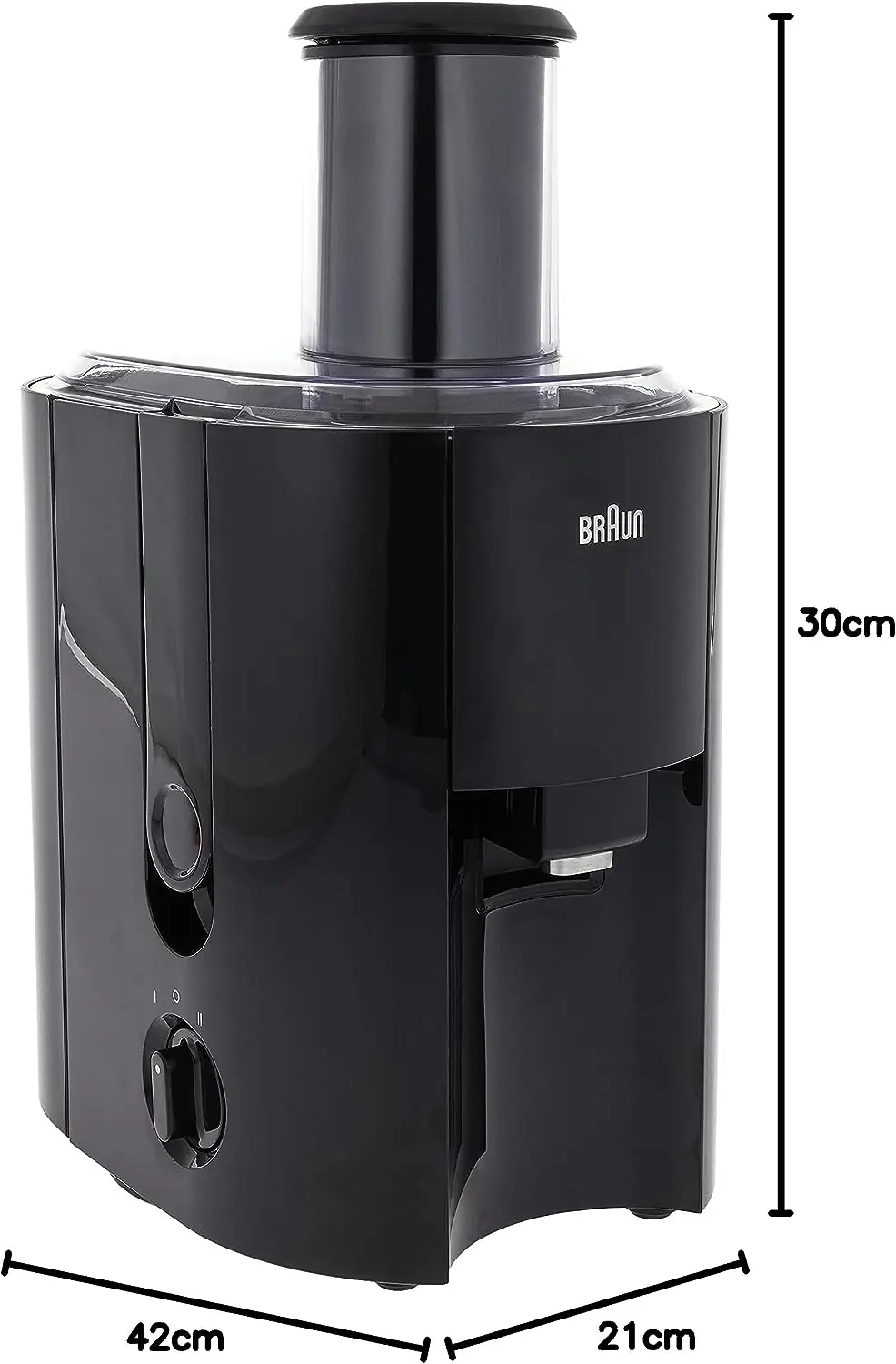 Made out of high gloss plastic body with stainless steel accents, the Braun Multiquick 3 Juicer J300 is a robust yet elegant and compact appliance.Every line, every detail has been thought through carefully to combine form and function, beauty and performance.