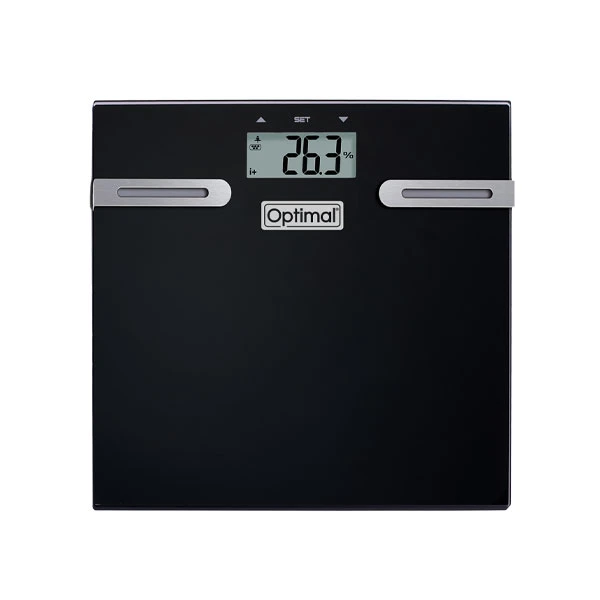 Measures body fat, body hydration, BMI and suggest calorie intake requirement 150 Kg capacity 12 memories Auto on Auto-recognition