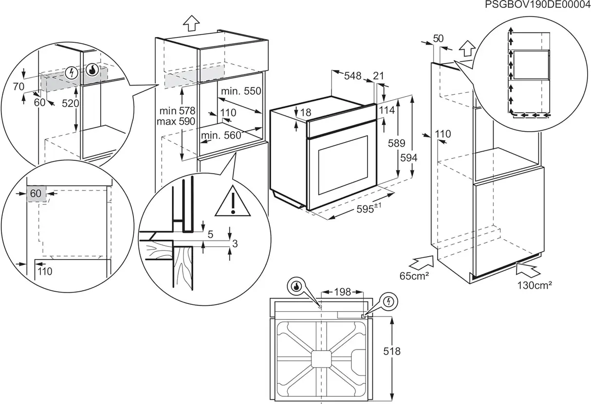 Built-In Gas Oven 70L with Grill, 60cm, Stainless Steel, Electrolux