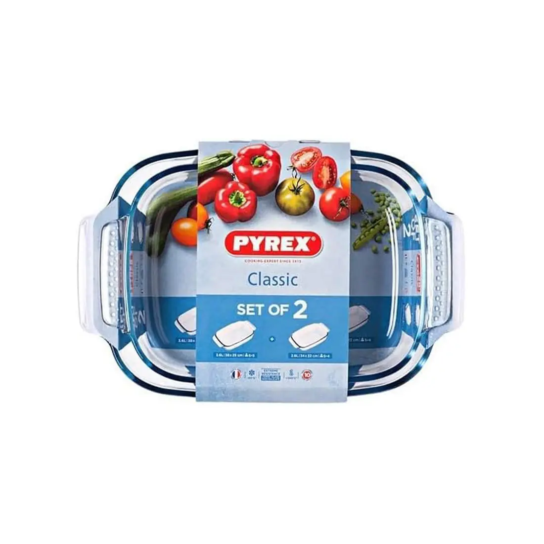 Classic Rectangular Roaster Set of 2, 34cm & 38cm, Pyrex