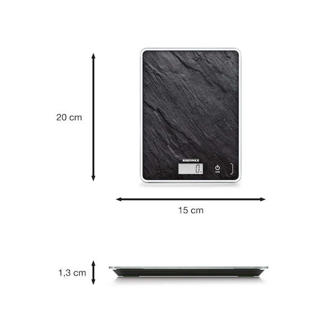The anti-slip feet ensure the Page Compact 300 Slate digital kitchen scale remains still on the work surface whilst in use.
