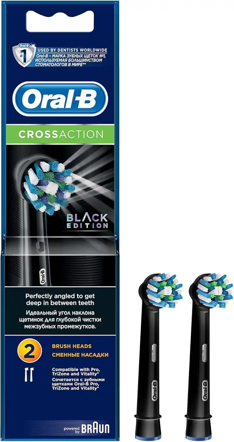 CrossAction Black Replacement Toothbrush Heads, Pack of 2, Oral-B