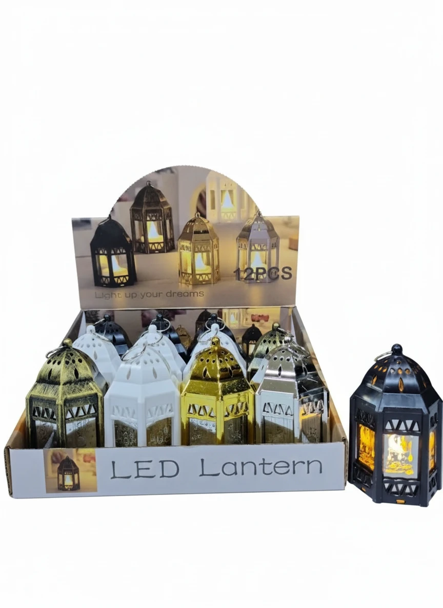 Add a warm and festive glow to your seasonal décor with this mini decorative Warm Light lantern (10 cm). Designed in a classic lantern shape with cut-out details, it creates a soft, cozy light effect that enhances any space during Ramadan.