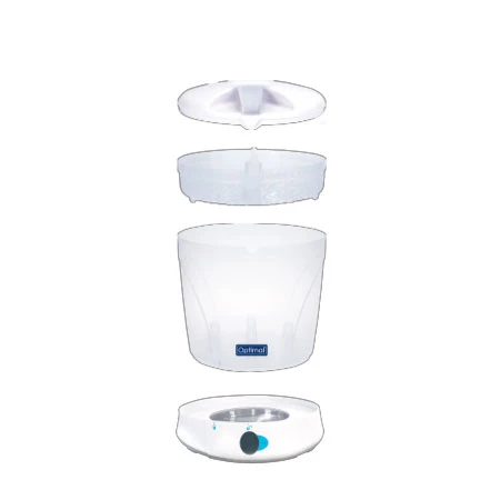 This dual-phase sterilizer (heating and cooling) can be electronically controlled to disinfect up to seven bottles at once in a matter of 9 minutes.