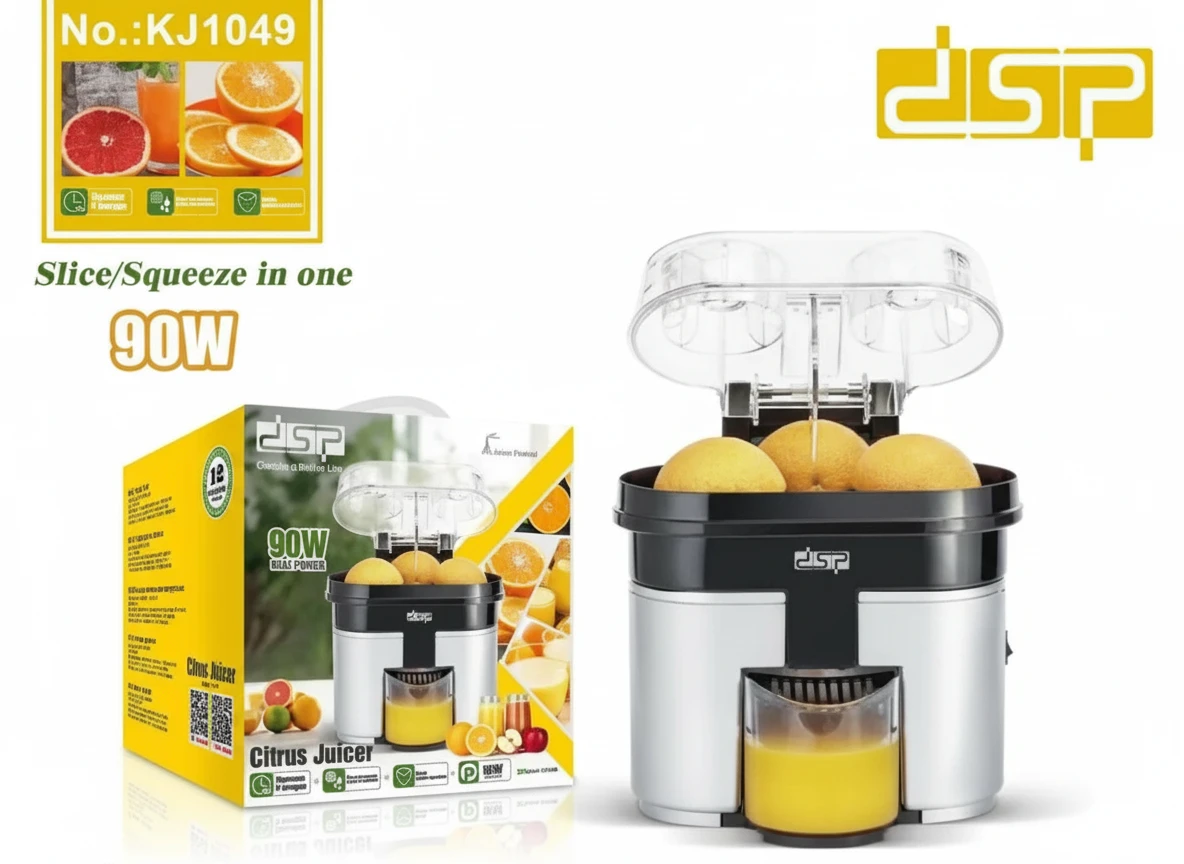 The DSP Citrus Juicer offers powerful 90W performance with a double head design for faster juicing. Ideal for extracting juice from oranges, lemons, and other citrus fruits. The juicer is designed to save time and effort, delivering fresh juice quickly. Perfect for home use, this compact juicer features a durable design and easy-to-clean components. It’s a must-have for anyone who loves fresh juice daily.