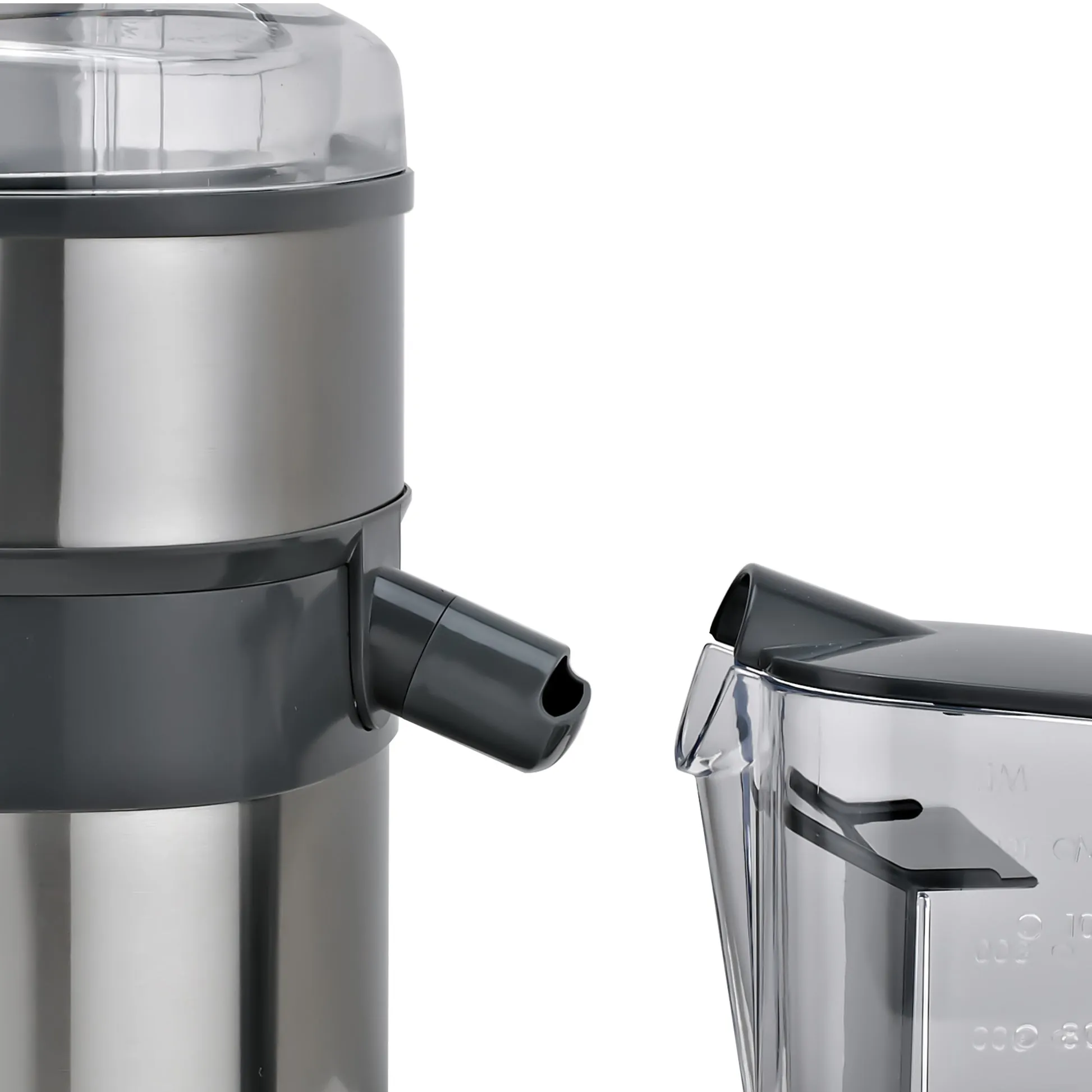 Electric citrus juicer with stainless steel handle and anti-drip spout