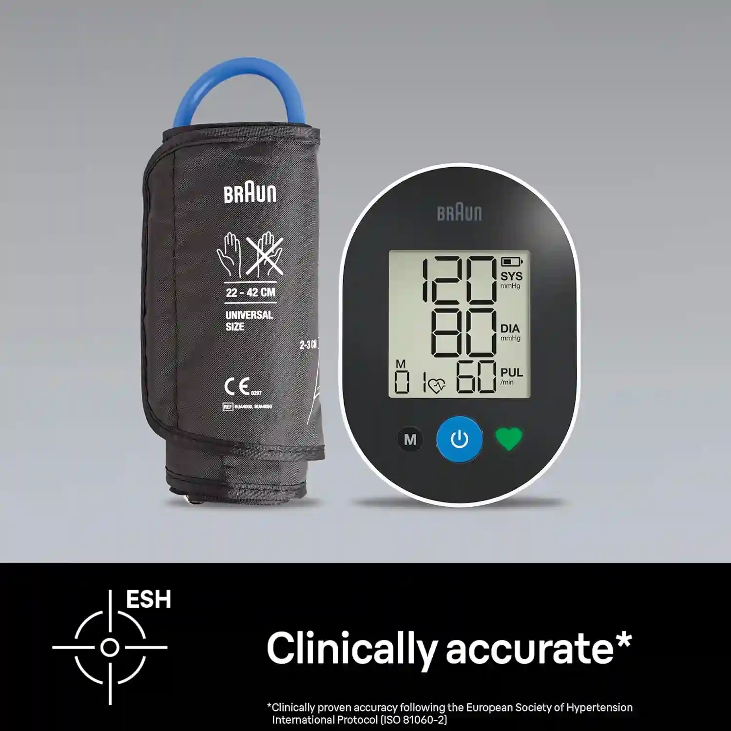 CLINICALLY ACCURATE: Clinically validated accuracy following the European Society of Hypertension International Protocol, Braun ExactFitTM 2 Upper Arm Blood Pressure Monitor provides accurate results you can trust.