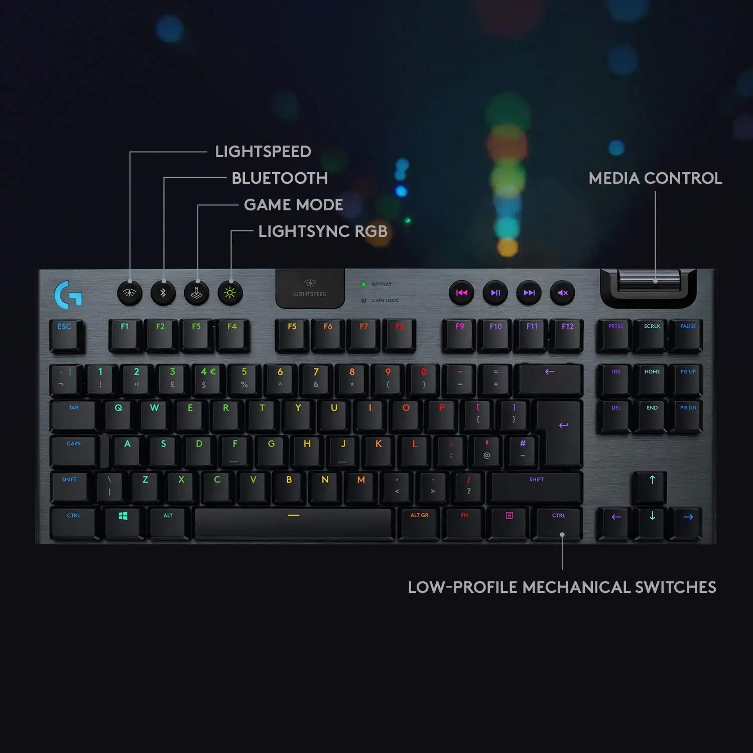 Enjoy 40 hours of game time on a single charge. Low battery warnings at 15 percent on the keyboard battery LED and via pop-up notification in the Logitech G HUB software. Quickly recharges in 3 hours.