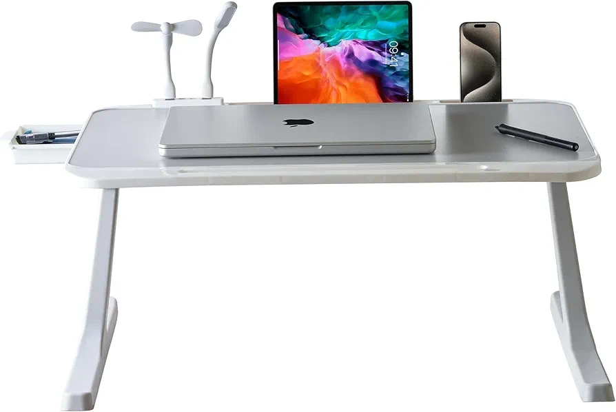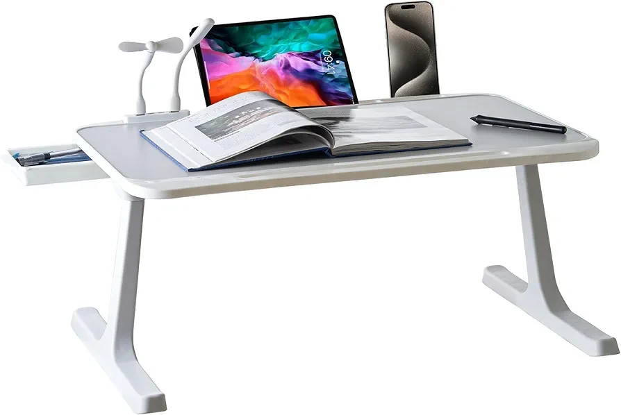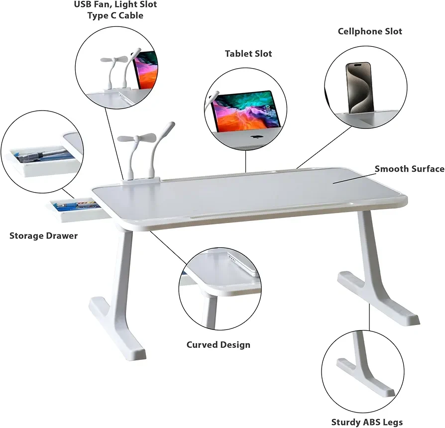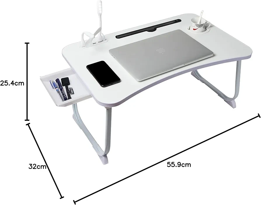 15. 【Multifunctional】The laptop desk comes with 1) Storage Drawer to store the USB fan, LED, pen, stationary etc 2) Cup Holder slot to avoid any accidental spills 3) Tablet/Mobile Holder 4) USB Hub with Fan & LED Lamp