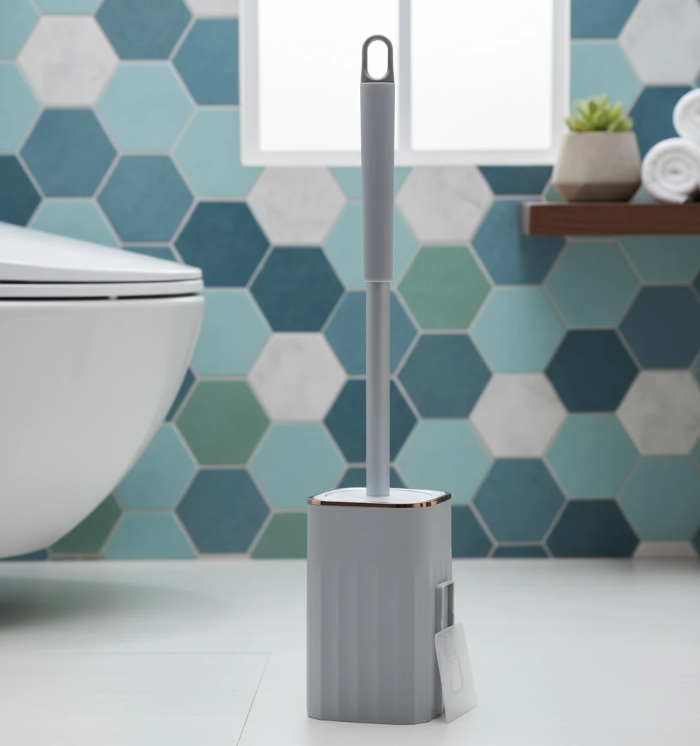 This sleek and modern toilet brush comes with a sturdy stand for easy storage and a clean, organized bathroom. The ergonomic design and high-quality materials ensure efficient cleaning with ease. A great addition to your bathroom for both style and functionality.
