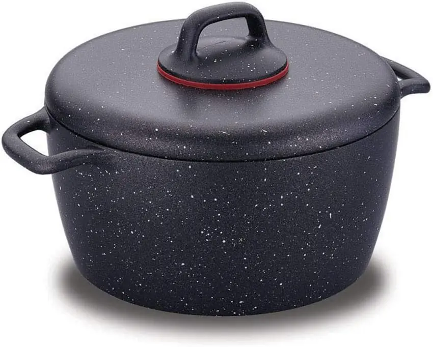NONSTICK GRANITE COATING: The nonstick pot has a volcanic-looking PTFE coating with excellent non-stick properties on interior surfaces. Korkmaz Gusto Die Cast aluminum casserole, which is coated with 5 layers of volcanite PTFE, is unique with its non-stick and scratch-resistant features.