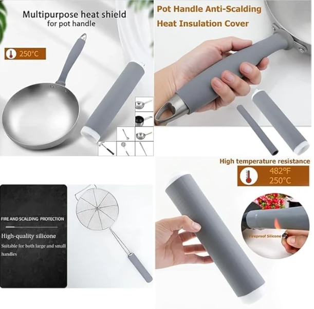 Cook with confidence using this heat-resistant silicone handle holder, designed to protect your hands from burns while providing a secure and comfortable grip. It acts as a safety holder, allowing you to handle hot pots and pans with better control and ease.