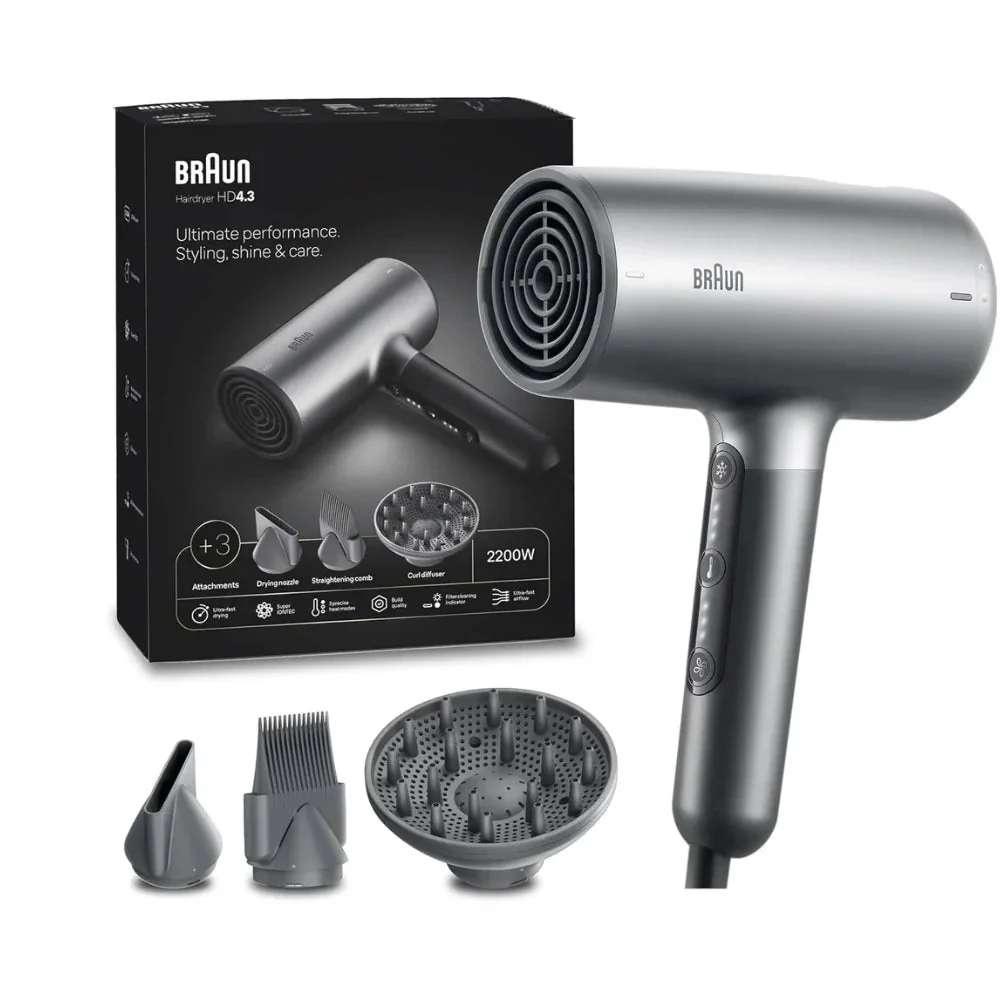 Ion Black Lightweight Hair Dryer 2200W, 3 Speeds, Smoothing Shine, Braun