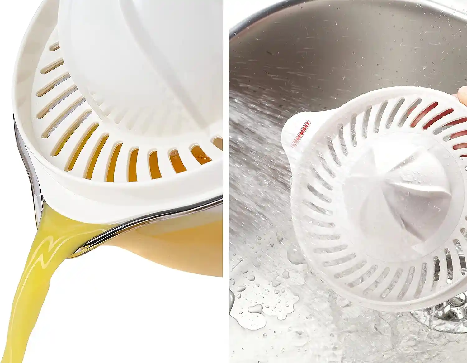 Double cone for the pressing of small and large citrus fruits.