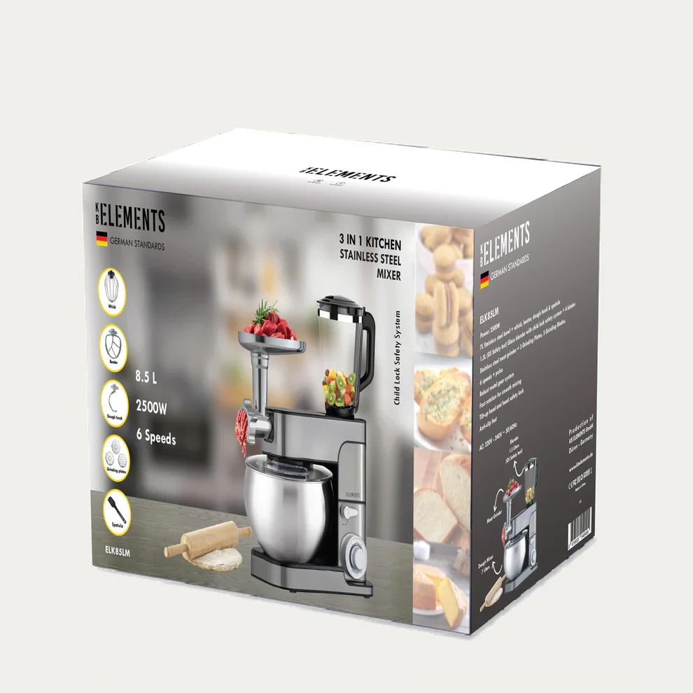 The KB Elements 3-in-1 Stainless Steel Mixer is your ultimate kitchen companion, designed for effortless food preparation with style and ease.