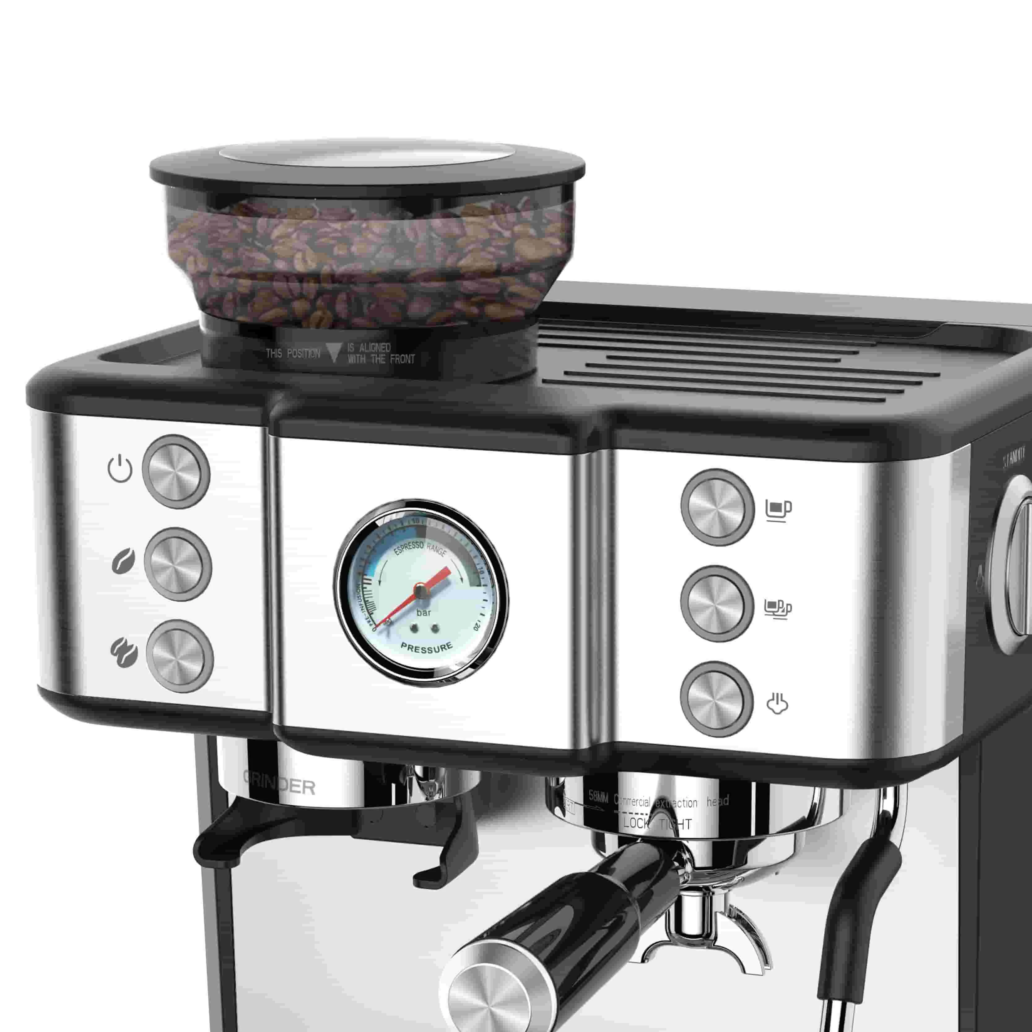 - Multiple Brewing Options: Includes settings for 1 cup grind, 2 cups grind, 1 cup espresso, 2 cups espresso, hot water, and milk frothing.