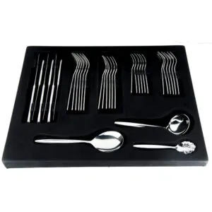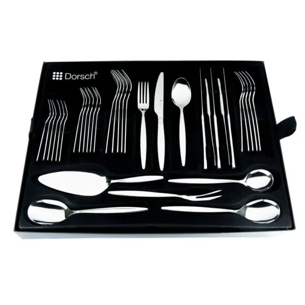 We all love gatherings and eating together, that?s why we introduce to you this cutlery set which is intended for large gatherings. For twelve persons to serve our Dorsch Cutlery set comes with table forks, Table Knifes & spoons, as well as cake forks and coffee spoons ? along with essential accessories. Dorsch cutleries are made of 18/10 stainless steel which has superior lasting quality.