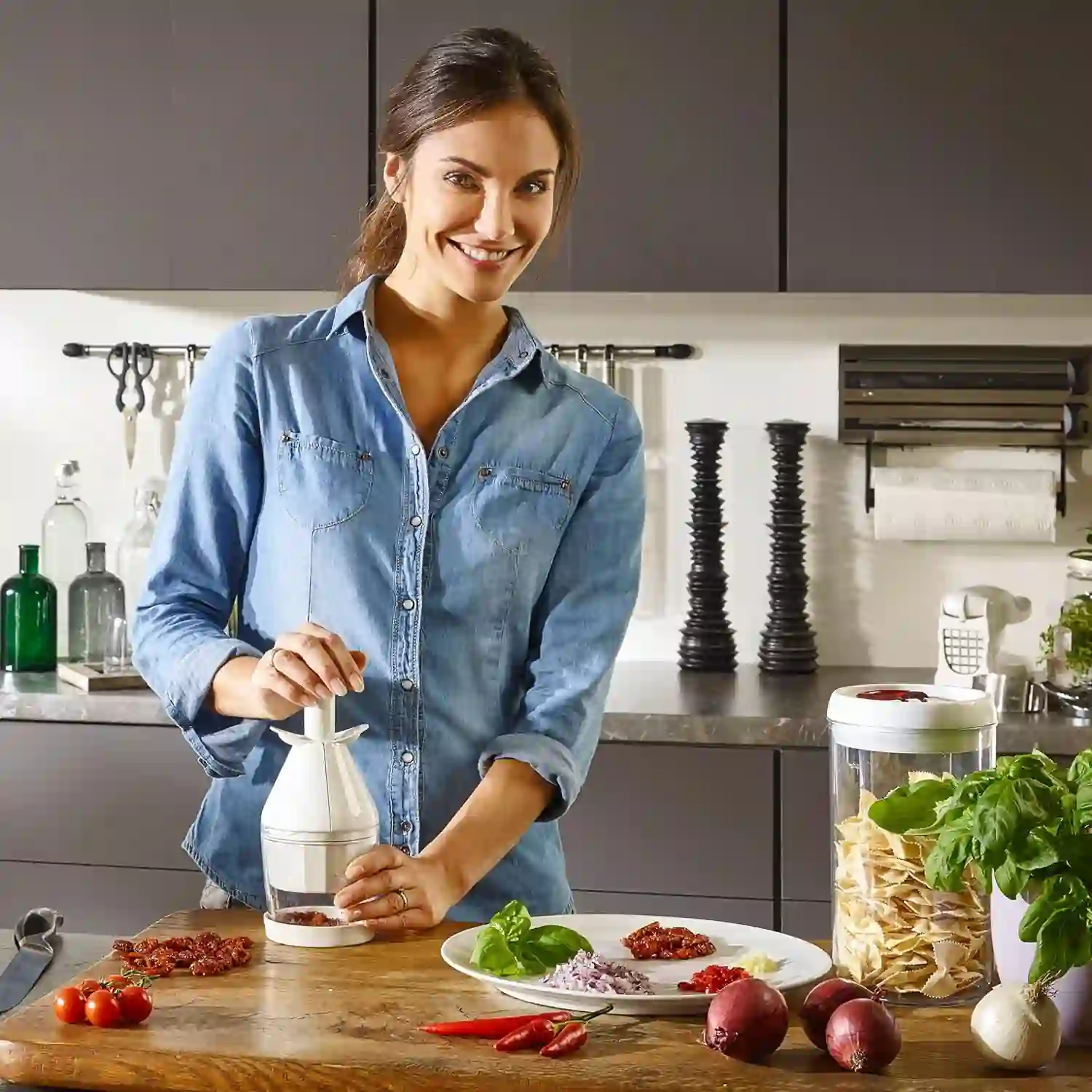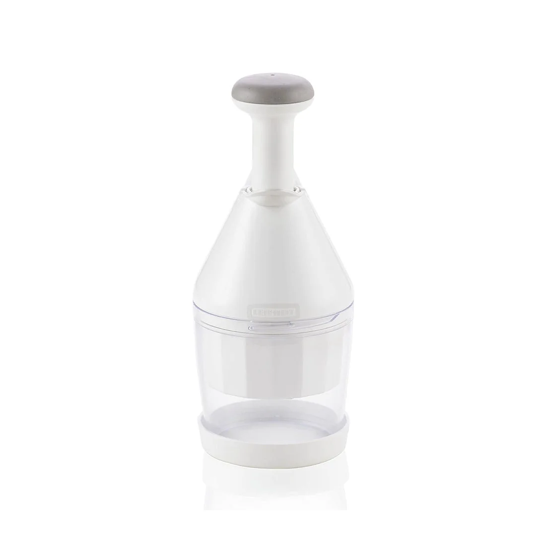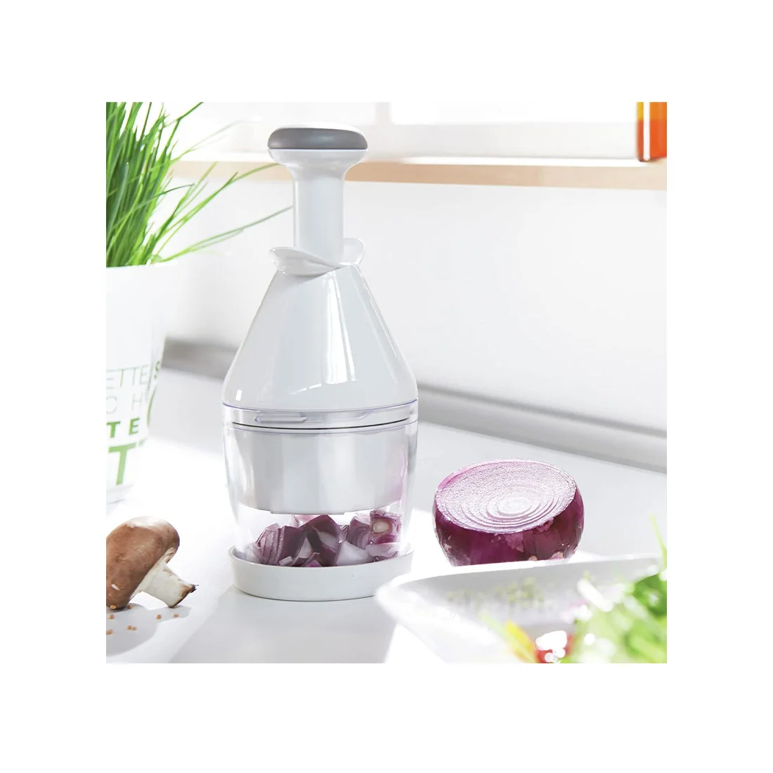 Enhanced manual food processor with superior comfort grip and easy cleanup