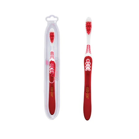 This uniquely designed toothbrush consists of soft micro-plus bristles that gently massage gums and protect enamel, in addition to a cushioned handle for ease of use and a tongue cleaner.