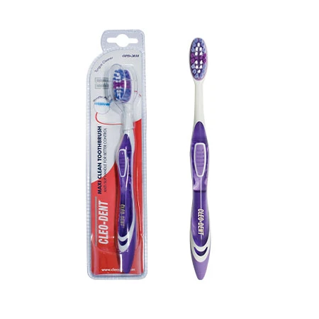 This uniquely designed toothbrush consists of soft micro-plus bristles that gently massage gums and protect enamel, in addition to a cushioned handle for ease of use and a tongue cleaner.