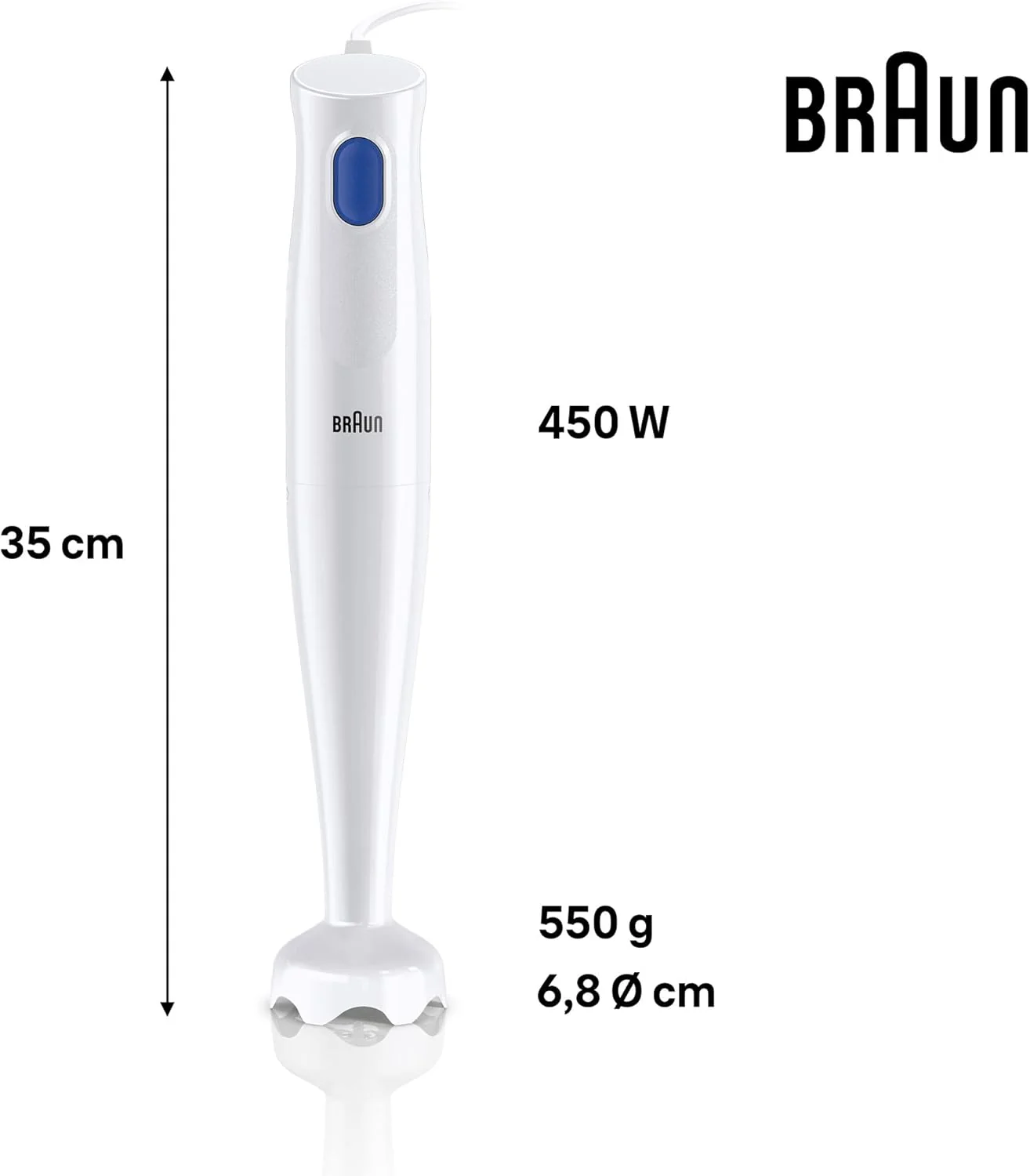MultiQuick 1 White Hand Blender, 450W, 600ml Beaker, Braun
