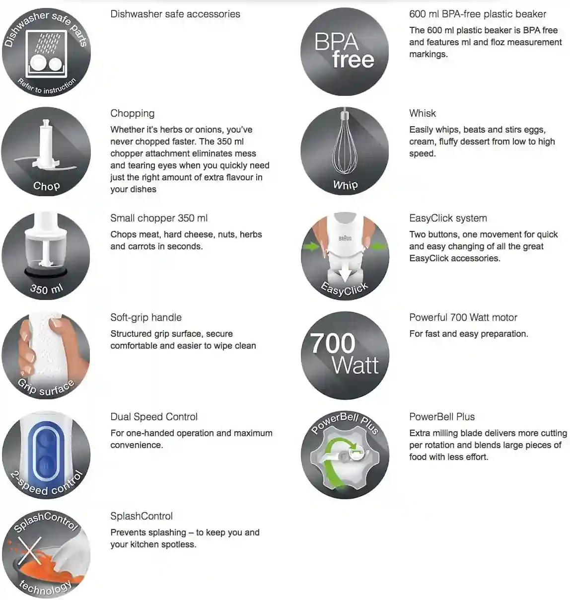 tools: mini chopper 350 ml, 600 ml BPA-free plastic beaker, accessory whisk