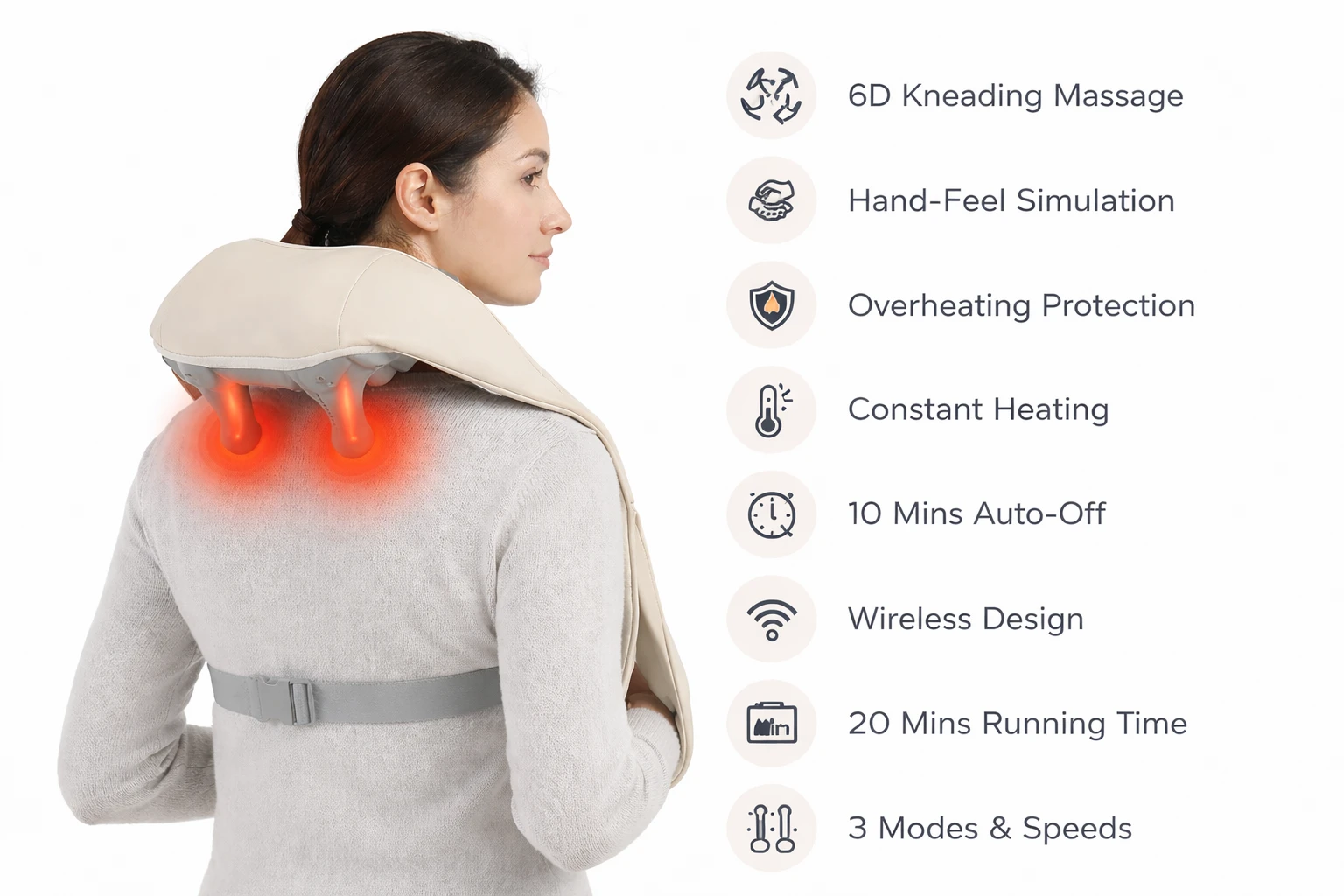 Experience unparalleled relaxation with the Wireless Neck and Shoulder Massager, designed to melt away tension and stress. This innovative device is perfect for busy professionals, athletes, or anyone seeking relief from muscle stiffness and discomfort. With its ergonomic design and advanced features, this massager delivers a soothing experience that rejuvenates both body and mind.