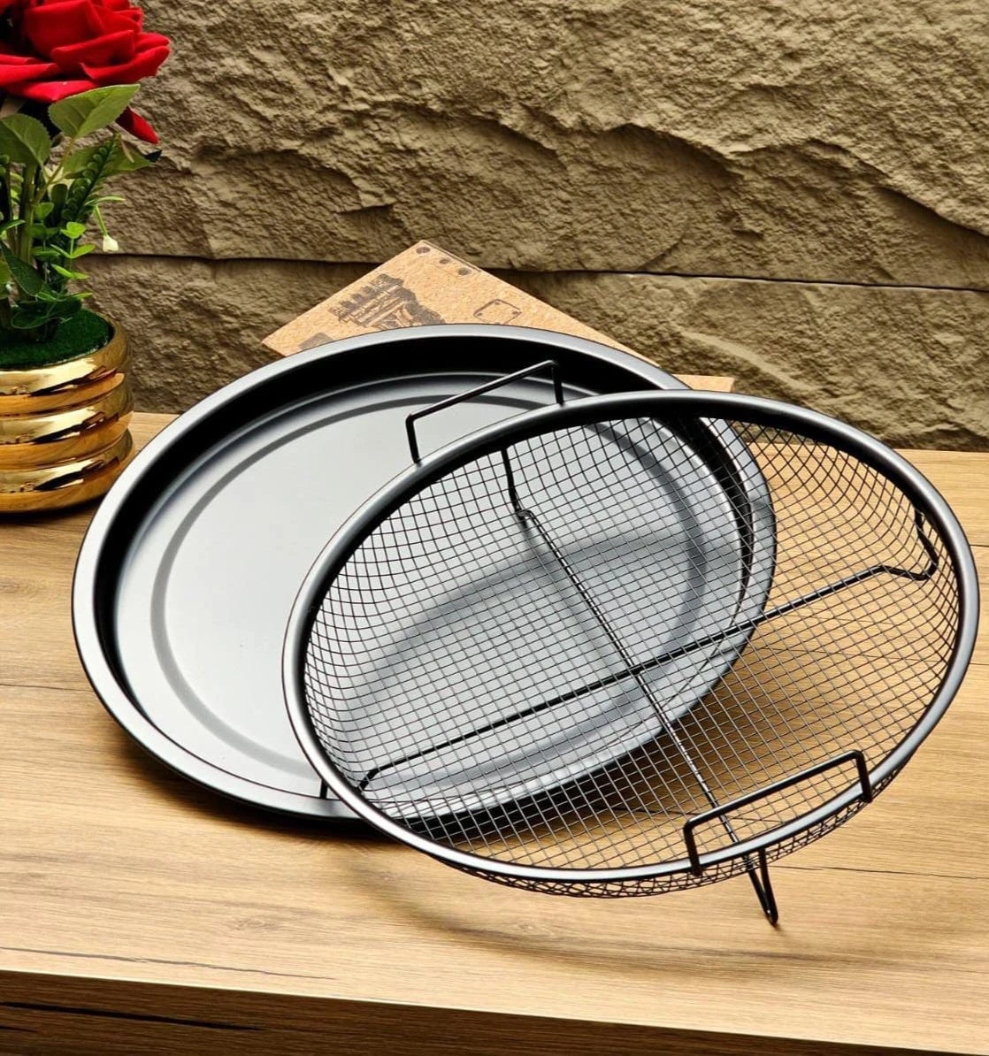 Upgrade your home cooking with this non-stick mesh crisper tray and removable basket set, designed to deliver perfectly crispy results every time.
