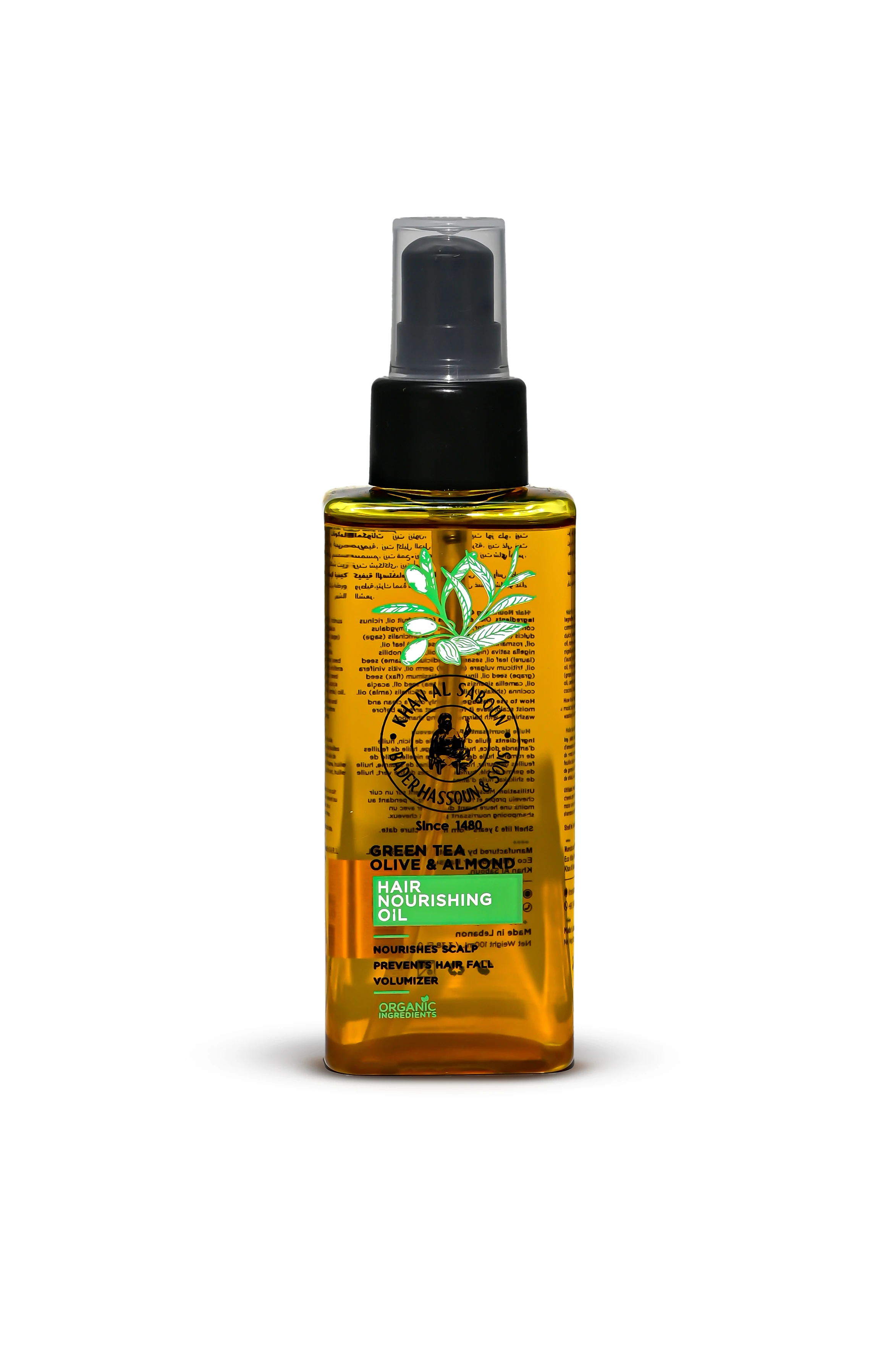 Ingredients: Olive Oil, Castor Oil, Sweet Almond Oil, Sage Oil, Rosemary Oil, Nigella Seed Oil, Laurel Leaf Oil, Sesame Seed Oil, Wheat Oil, Grape Oil, Flax Seed Oil, Green Tea Oil.