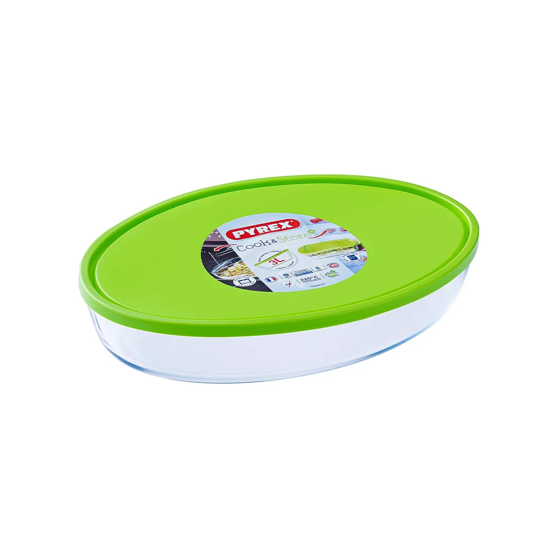 Oval Glass Roaster with Lid 35x24cm, Freezer Safe, Pyrex