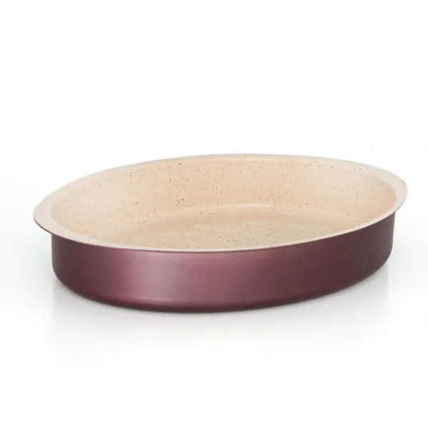 Tough three-layer PFOA-free nonstick interior that is dishwasher freindly. Use the pan to roast meats and Whole Chicken. Tall, straight sides help contain splatters while the nonstick surface simplifies making gravies and pan sauces.