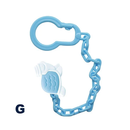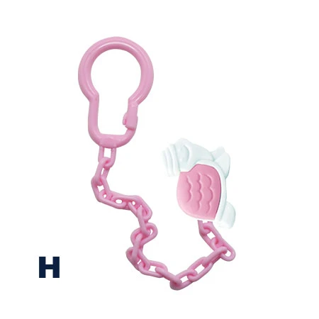 A colorful chain that is specially designed to hold your baby's pacifier and keep it safely attached to his/her clothes.