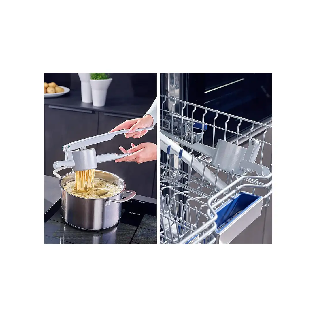 Quick cleaning - simply disassemble the potato press thanks to the removable pin and clean by hand or effortlessly in the dishwasher