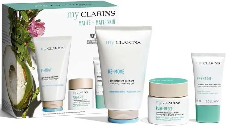 Pure-Reset Gel Mattifying and Purifying Skincare Set for Young Skin, clarins