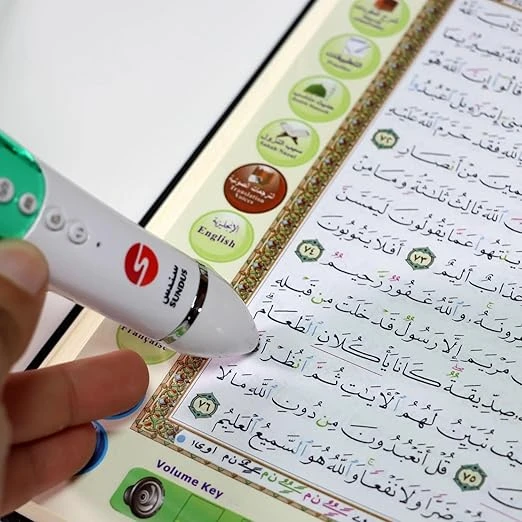 This innovative Quran set includes a 16GB Quran book and a specially designed reading pen. The pen allows you to touch any verse in the Quran to hear it read aloud, making it easier to follow and memorize. The Quran book is available in 3 sizes, catering to different preferences and needs. Ideal for enhancing your Quranic learning experience, this set offers a modern, interactive approach to engaging with the Quran.