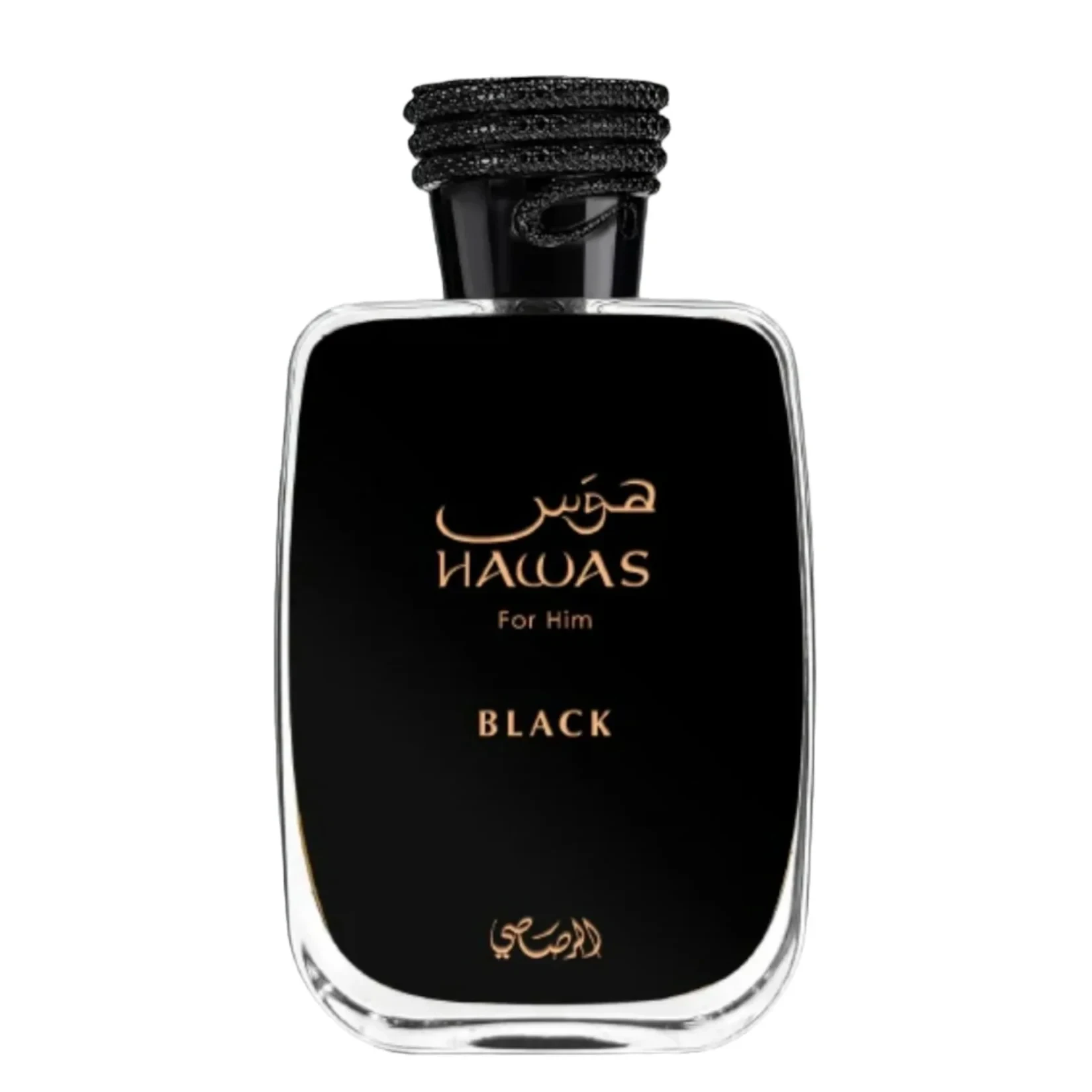 Hawas Black by Rasasi is a fragrance for men. This is a new fragrance. Hawas Black was launched in 2024. Top notes are Bergamot, Pineapple and Grapefruit; middle notes are Patchouli, Cedarwood and Jasmine; base notes are Oakmoss, Woody Notes and Amber.
