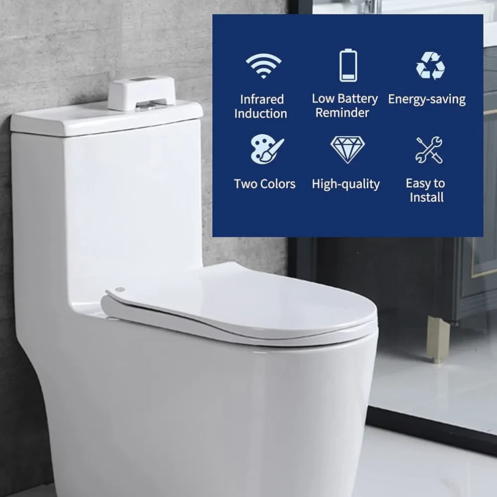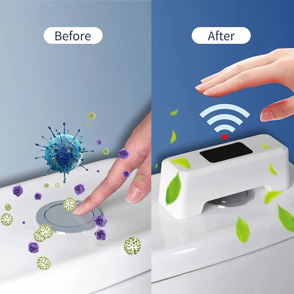 An automatic touchless toilet flush aid with a motion sensor flush button is a device that allows for hands-free flushing of a toilet. It is designed to enhance hygiene and convenience by eliminating the need to touch the flush button or handle. Using a touchless flush aid with a motion sensor can provide a more hygienic and convenient experience in public or private restrooms. It helps reduce the spread of germs and ensures that the toilet is flushed without the need for manual contact.