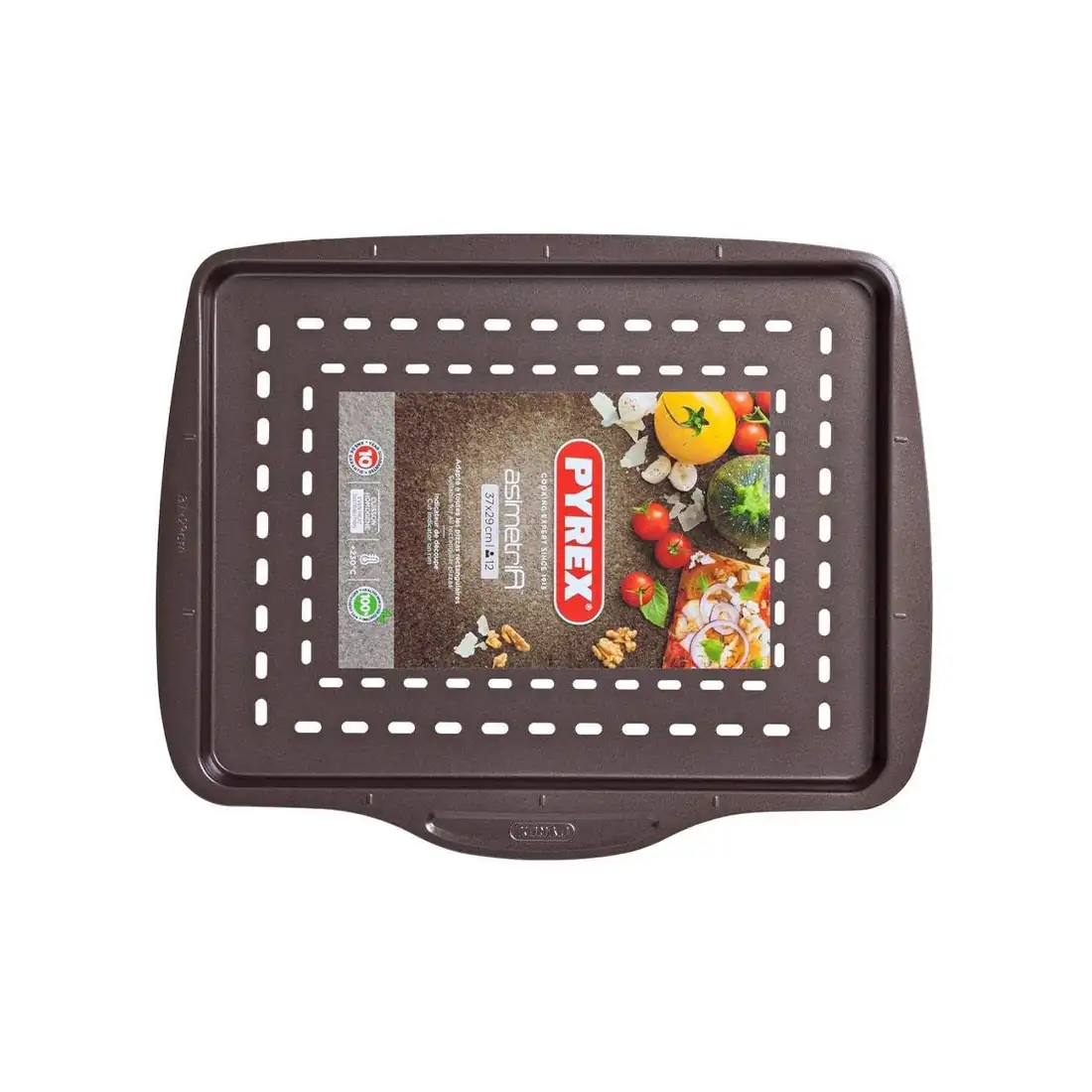 Rectangular non-stick pizza pan 37x29 cm, modern design, Pyrex