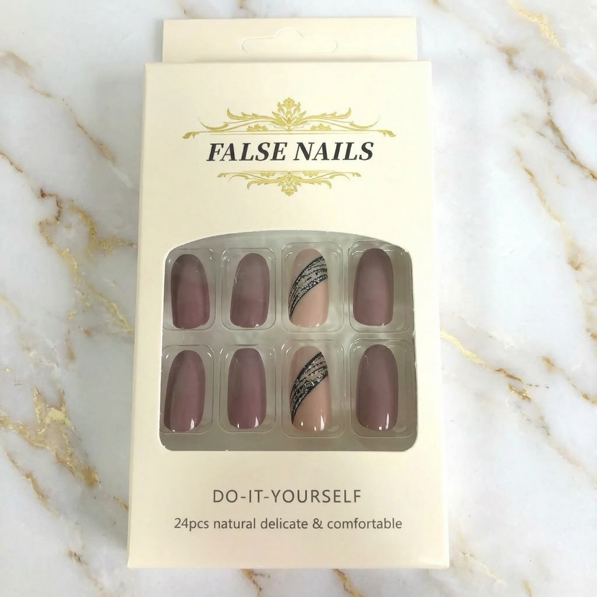 This set of 24 pieces rose purple design false nails comes with double-sided glue stickers, allowing for easy, mess-free application without the need for liquid glue. The nails provide a natural and comfortable fit, and the set includes a variety of sizes for a perfect match. Some nails feature elegant press-on designs, adding a chic and stylish touch to your manicure. Ideal for a quick and easy DIY nail makeover.