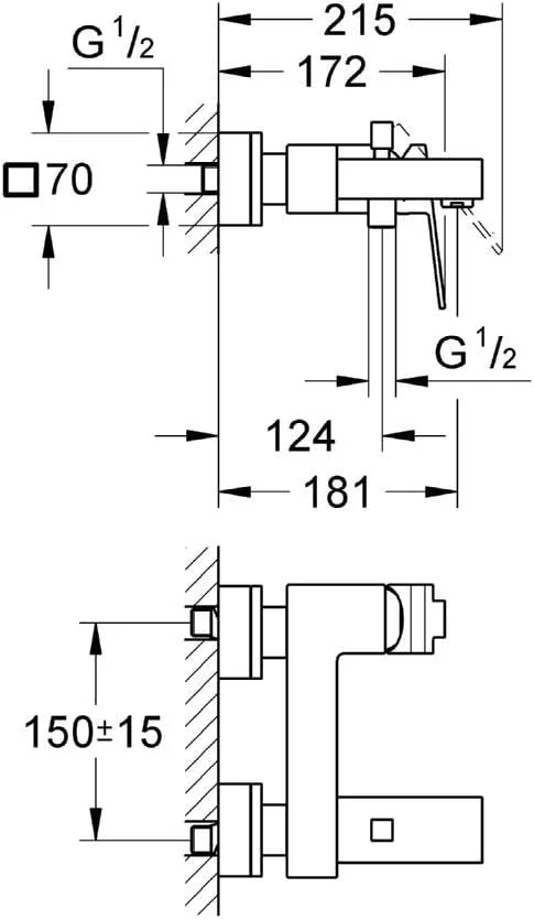 wall mounted metal lever GROHE SilkMove 46 mm ceramic cartridge